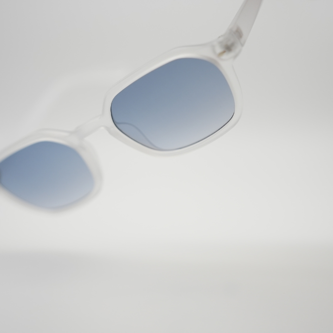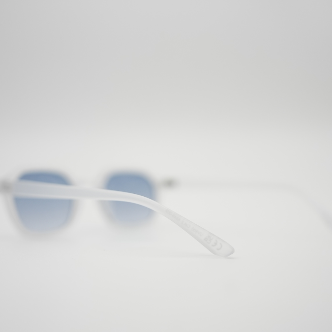 Στυλάτος Σχεδιασμός: Κλασικό διάφανο πλαίσιο με ανοιχτούς γαλάζιους φακούς, προσφέροντας ένα κομψό και σύγχρονο look.