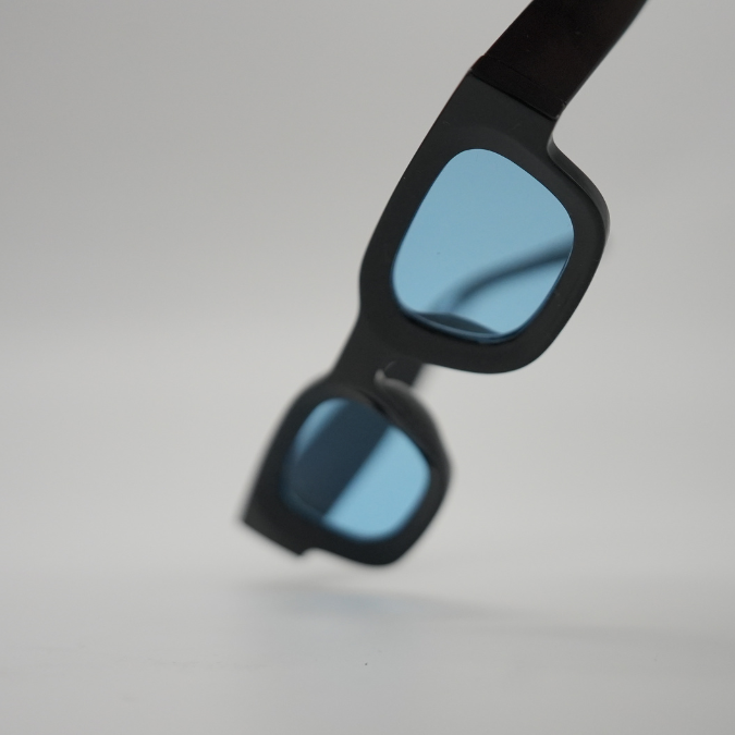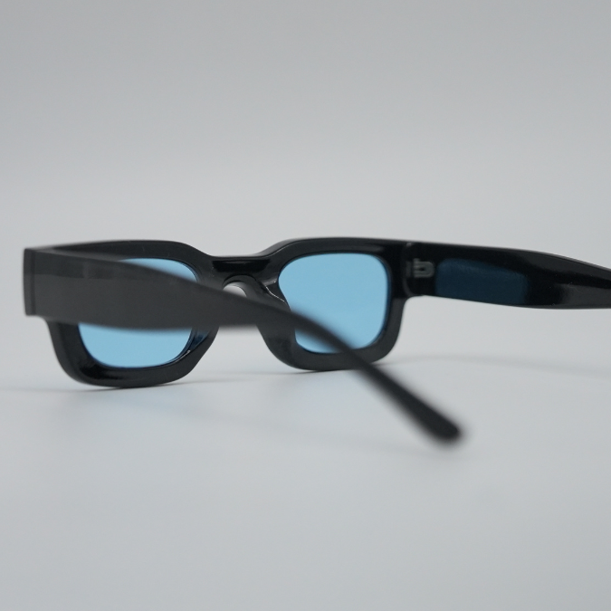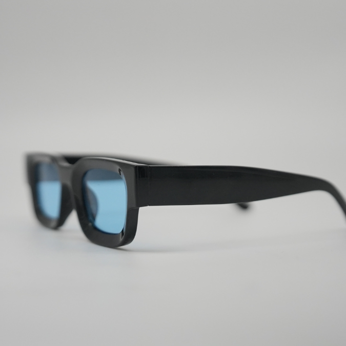 Στυλάτος Σχεδιασμός: Κλασικό μαύρο πλαίσιο με γαλάζιους φακους, προσφέροντας ένα κομψό και σύγχρονο look.