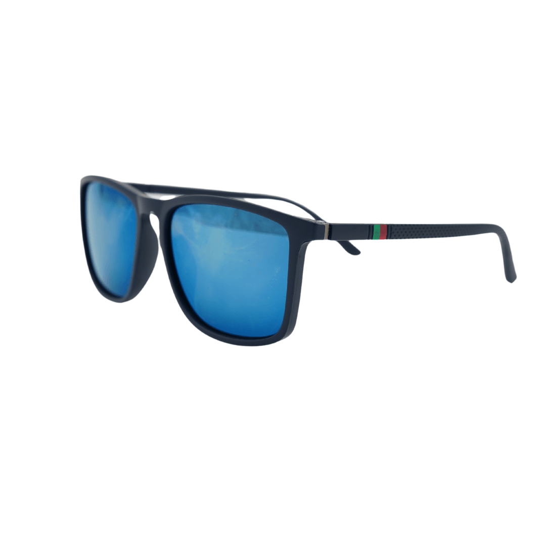 Κλασικά μαύρα γυαλιά ηλίου με μπλε φακούς. Στυλάτα, ανθεκτικά και σχεδιασμένα για να προστατεύουν τα μάτια σας με φακούς που μπλοκάρουν τις UV ακτίνες. Ιδανικά για κάθε casual ή εξωτερική περίσταση.